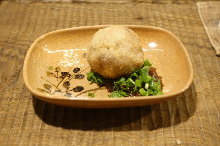 続いて「鴨メンチ」。しっかり肉々しく、それでいて臭みは一切なし。ソースとの一体感がよく、和洋の中間にあるような、しかし確かに“割烹の延長線上”にある味わい。