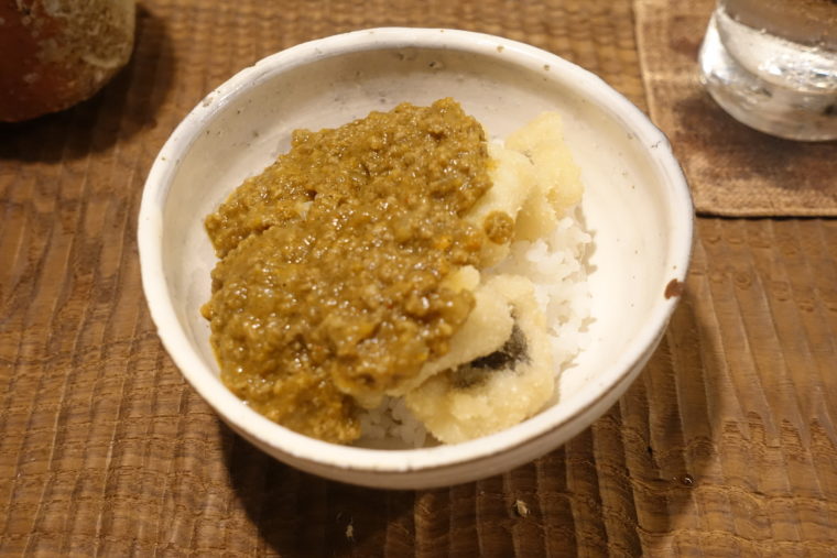 まずは「鱧カツカレー」。淡白な鱧に、軽やかに揚げられた衣が寄り添い、そこにスパイスの刺激が重なる。和の食材に洋の装いを纏わせるこの発想が面白い。京都の夏を象徴する鱧が、ここでは大胆に“締めの主役”として登場する。
