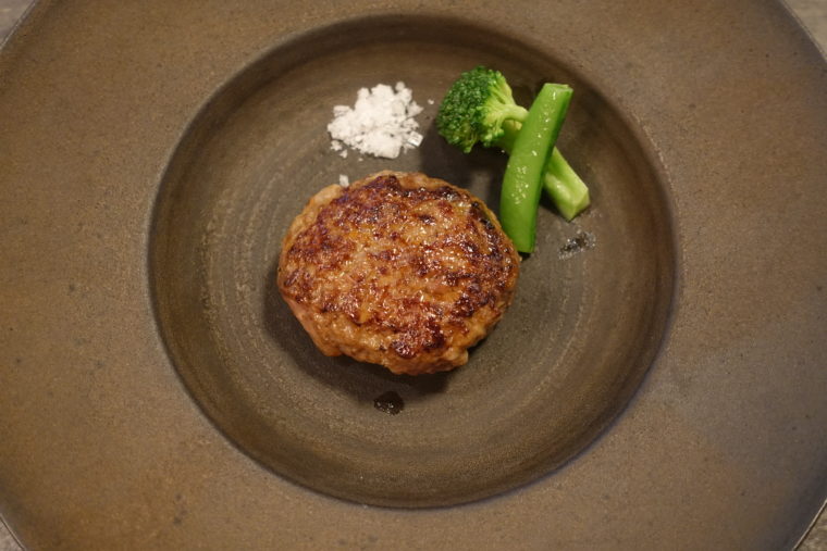 続けて供されるのが「鹿と猪の合い挽きハンバーグ」。手切りの豚バラを加えて重たくならないよう調整し、味のバランスを保つ構成。この一皿の完成度には息を呑む。