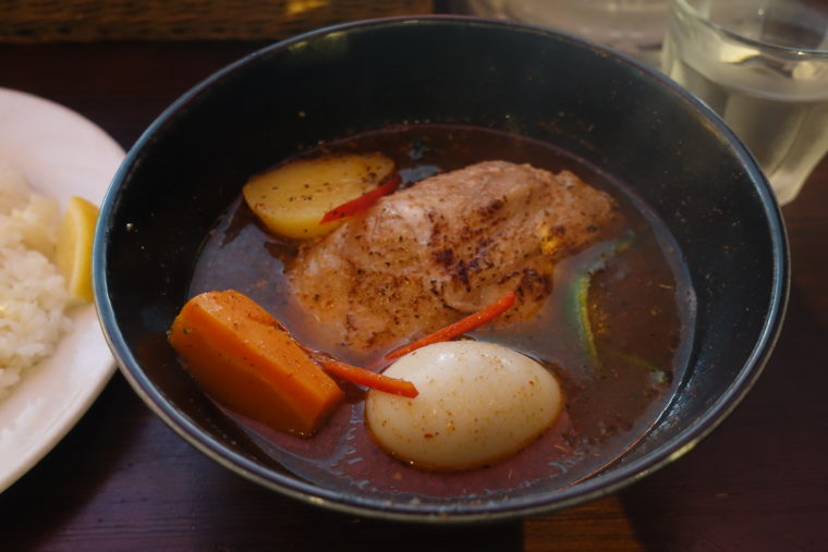 2025.05.31 昼 スープの奥に、確かな情熱が宿る@札幌スープカリー アナンダ カレー 横浜市 1000円〜2999円 ★★★★☆ 横浜駅東口から徒歩すぐ。裏横浜の雑居ビルにひっそりと構える『札幌スープカリー アナンダ』。その名は、ヒンドゥー語で「喜び」、バリ語で「至福の時」、サンスクリット語で「平穏」を意味するという。その名の通り、スパイスの香りに包まれた店内で、至福の一杯が待っている。 店主・柳瀬裕人氏は、もともと広告代理店に勤めていたという異色の経歴の持ち主。カレーへの情熱を抑えきれず脱サラし、修行を経てこの店を開いたというから、その熱意は本物だ。公式ホームページにも経歴や想いが綴られており、読むだけでそのカレーへの真剣さが伝わってくる。 看板メニューは「やわらか炙り でかチキンカリー」。骨なし鶏もも肉は、表面に香ばしい炙りを効かせ、スプーンでもほぐせるほど柔らかい。スープは14種のスパイスに鶏ガラや牛すじ、香味野菜を合わせ、15時間以上かけて仕上げる渾身の一杯。深いコクと香り、スパイスのキレが見事に共存している。 辛さは0〜15番までの16段階。今回は“ちょうど良い刺激”の3番「三昧」を選択。穏やかな辛さの中に、グリーンカルダモンがふわりと香り、後味に余韻を残す。ライスには人気の「チーズ・オン・ザ・ライス」をトッピング。まろやかさがスープの辛味をやさしく包み込み、両者の良さを引き立て合う。 札幌で生まれたスープカレーの文化が、横浜の一角でしっかりと根を下ろしている。その静かで熱い情熱が、この一皿に宿っている。喜び、至福、平穏——そんな想いをそのままカレーに映したような『アナンダ』の世界観に、じんわりと心を掴まれた。ご馳走様でした。 — 札幌スープカリー アナンダ045-316-1288神奈川県横浜市西区平沼1-38-2 咲久良ビル M2Fhttps://tabelog.com/kanagawa/A1401/A140102/14010851/