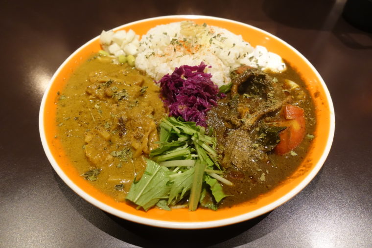 この日のあいがけは、「6月の初めに食べるカレー」と「ココナッツチキンカレー」。