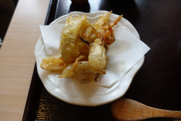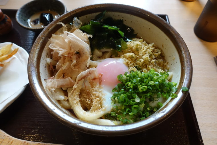 2025.06.08 昼 香川素材で組み立てる宇都宮うどん@ぶつをのうどん うどん 宇都宮・鹿沼 1000円〜2999円 ★★★☆☆ 2008年創業。宇都宮市役所のすぐ近くに構える『ぶつをのうどん』は、香川県から取り寄せた粉と醤油を使い、手打ちの讃岐うどんを提供している。店名の「ぶつを」は店主のあだ名から。日曜ともなれば開店前から行列ができる人気ぶりで、地元客に根づいた一軒だ。 最初に出されたのは、お通しの「豆腐の浅漬け添え」。しっかり冷えた豆腐の上に、細かく刻んだ大根や人参の浅漬けがのる。ほんのりとした酸味と塩気が絶妙で、食事の導入としての役割をきっちり果たしている。単なる箸休め以上に、店の“丁寧さ”を感じる一皿だった。 主役は「温玉ぶっかけ(冷)」と揚げ物の2種。まず麺は、いわゆる讃岐の“喉越し”タイプではない。太く、ごつごつとした存在感で、噛み締めてこそ旨さが立ち上がる構成。その強靭なコシは、讃岐というよりもむしろ“ぶつをのうどん”という独自ジャンルとして受け止めた方が納得できるかもしれない。 ぶっかけ出汁は色白で、いりこや鰹節の風味が効いている……はずなのだが、温玉が全体に絡む構成ゆえか、香りや輪郭はぼやけてしまった印象。出汁単体で味わえばもっと違ったかもしれない。卵と合わせて食べることでの一体感はあるが、素材の主張が少し控えめに感じられた。 揚げ物の完成度は申し分ない。とり天は軽やかな衣に包まれたジューシーな鶏肉が好印象。大ぶりながらも油っこさはなく、噛むほどに旨味が出てくる。 かき揚げは玉ねぎが主役で、香りの立ち方がとても良い。甘み、揚げ加減、厚みのバランスもよく、単体でも成立する仕上がりだった。 最後には、小さなコーヒーゼリーが一口。控えめな甘さのミルクソースと苦味の効いたゼリーのバランスが良く、スッと口に入っていく。重くなりすぎず、余韻をすっと締めてくれるポジションとして機能していた。 全体を通して、主張しすぎず、かといって平板ではない。うどん、出汁、揚げ物、それぞれがしっかり整えられ、自然な構成で一食を組み立てている。日曜の昼にこの行列ができる理由も、食べ終わる頃にはきちんと理解できた。 ご馳走様でした。 — ぶつをのうどん028-639-0477栃木県宇都宮市松が峰2-9-3https://tabelog.com/tochigi/A0901/A090101/9003113/