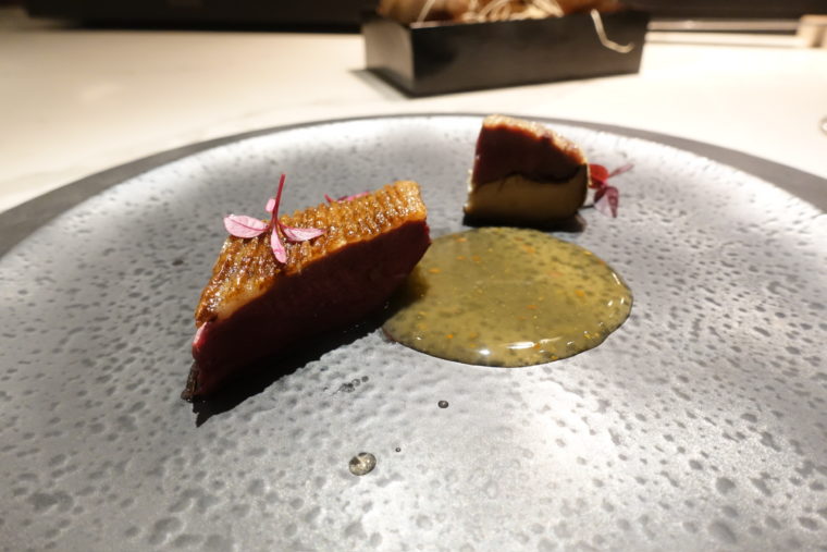 そして「旨味」。鴨むね肉を炭火で1時間。かんずりと味噌で厚みのある味にまとめ、付け合わせの椎茸の肉詰めも主役級。もはやメインディッシュそのもの。