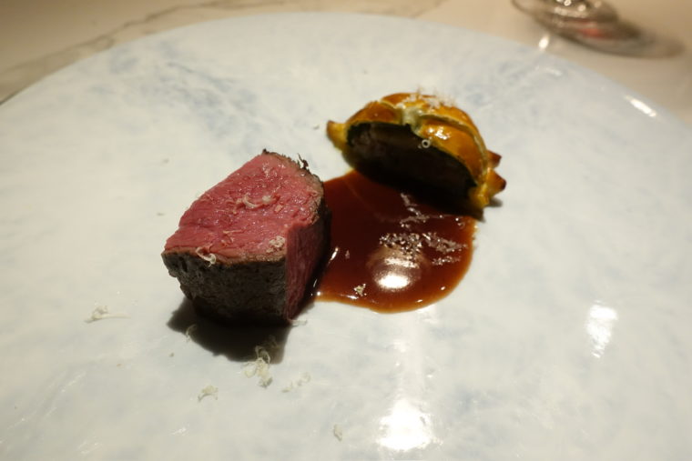 後半の主役、「万葉牛×パイ包み」。ねっとりと旨味が広がるネックの肉、赤ワインの重厚なソース、香ばしいパイのコントラスト。完全に締めの一皿かと思いきや、ここから怒涛の炭水化物ゾーンが続く。