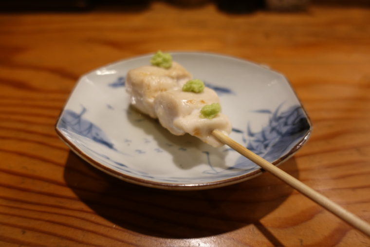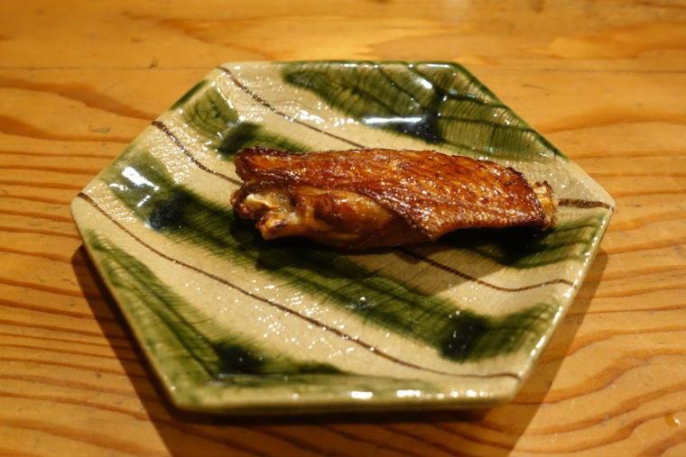 2025.06.19 夜 関西焼鳥の系譜に連なる味@あやむ屋 焼鳥・焼きとん 大阪市 5000円〜9999円 ★★★☆☆ 福島の焼鳥名店『あやむ屋』。白い暖簾に灯る鶏の提灯が目印。格式ばった雰囲気はなく、木の温もりに包まれたカウンターで、炭火の香りで迎えてくれる。ミシュランの星を獲得したこともある実力派で、関西一の焼鳥職人と名高い『鳥匠いし井』の石井氏が修業を積んだ場所としても知られる。つまり、焼鳥好きなら一度は訪れるべき“源流”のような一軒だ。 この日いただいたのは、定番の「八串コース」。まずは「わさび焼き」。淡白な胸肉に山葵の風味を添え、序盤のアクセントとして最適。 「ねぎま」では、肉の弾力と葱の甘みが王道の美味しさを描く。 「三角」は皮目のパリッと感と脂の甘みが際立ち、塩の当て方は少々強め。アルコールとの相性を考慮してのことだろう。 合間に「エリンギ」を挟みつつ、 スパイスをまとった「ナンコツ」、 ジューシーで歯切れの良い「ズリ」と 「ハツ」へと流れる構成。 中盤の山場ともいえるのが「つくね」。大ぶりなサイズで、外は香ばしく中はふんわり。ひと串で満足感をもたらす。 最後の「肝」は濃厚な旨味に甘辛いタレがたっぷり。串の流れの中で、ぐっと濃度が高まる演出になっている。 そして、一品料理において絶対に外せないのが「手羽の唐揚げ」。最初の注文でしか受けられない一品だが、カリッとした衣の中に閉じ込められたジューシーな肉汁は必食。 締めには「焼きおにぎり」を。表面は香ばしく、しっかりとした焼き目が入り、ほっと一息つける味わい。あやむ屋の串たちの余韻を、やさしくまとめあげる存在だ。 味付けは全体的に塩が強め。だが、素材と技術に裏打ちされたこの塩気は、串から串へと食欲をつなぐ導線になっている。今日の焼き場は大将不在で息子さんが担当とのことだったが、きちんと次の世代に継がれている安心感がここにある。ご馳走様でした。 — あやむ屋050-5595-9664大阪府大阪市福島区福島5-17-39https://tabelog.com/osaka/A2701/A270108/27001234/