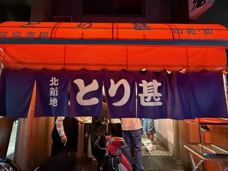 2025.06.20 夜 焼き鳥で終わる、北新地の夜@とり甚 焼鳥・焼きとん 大阪市 1000円〜2999円 ★★★☆☆ 深夜の北新地。最後の一杯、最後の一串を求めて向かう場所がある。『とり甚』。日中は鶏肉を扱う精肉卸として営業し、夜になるとそのまま立ち飲み焼鳥屋へと姿を変える異色の一軒だ。繁華街のど真ん中というロケーションといい、深夜営業というスタイルといい、まさに“締めの焼鳥”にふさわしい。 まずいただいたのは、北新地の名物ともいえる「皮」。しっかりと焼き込まれた皮は、カリッとした表面に、じわっと脂が滲み出す。酒場の熱気と鶏の香ばしさが絡み合い、立ち飲みならではのテンポで胃に落ちていく。 続く「つくね」は、こんがりと焼き上がった表面のパリパリ感が印象的。中はふんわりと仕上げられており、食感のコントラストが楽しい。 さらに驚かされたのが「鳥唐揚げ」。立ち飲み価格ながら、一個のサイズが驚くほど大きく、しかもふわりとジューシー。胸肉と思しき淡白な部位を使用しているが、火入れが絶妙なのだろう。揚げ物でありながら重たくなく、最後の胃袋に優しく収まる。 焼き台の向こうに立つのは、女将さん。物腰柔らかに客を迎えながらも、空間をきちんと仕切る存在感がある。店の雰囲気そのものが、この地で長く愛されてきた証のように映る。 北新地という繁華街で、しっかり飲んで、きちんと締める。『とり甚』はそんな夜の最後に寄りたくなる、頼もしい焼鳥屋だ。ご馳走様でした。 — とり甚06-6341-6520大阪府大阪市北区曽根崎新地1-2-2https://tabelog.com/osaka/A2701/A270101/27008204/