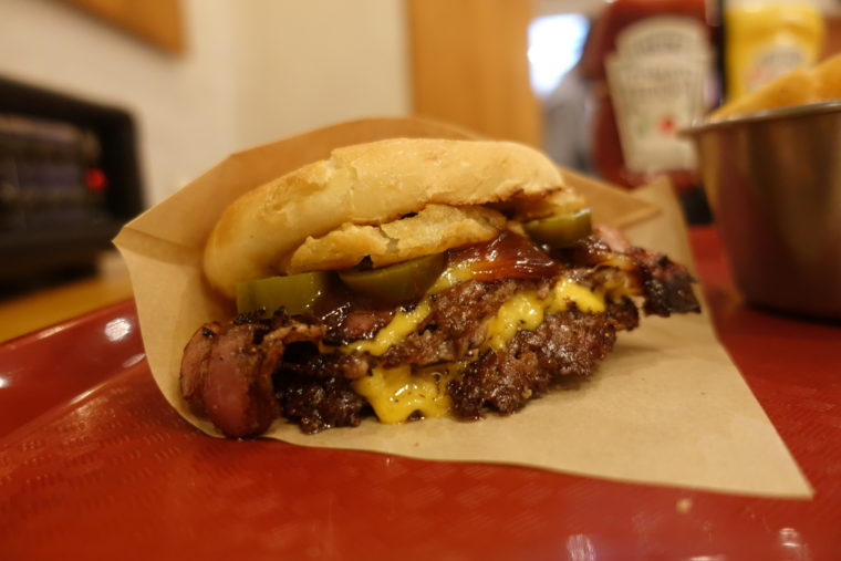 2025.07.01 昼 これがスマッシュパティか…!@CENTRAL BURGER SHOP パン・サンドイッチ・ハンバーガー 横浜市 1000円〜2999円 ★★★★☆ “スマッシュパティ”とは、粗挽きの牛肉を鉄板にギュッと押しつぶして焼く調理法。その瞬間に生まれるカリッとしたクラストが、香ばしさと旨味を最大限に引き出す。アメリカ本場のストリートバーガー文化を象徴する技法だ。そんなスマッシュスタイルに本気で向き合っているのが、横浜・関内にある『CENTRAL BURGER SHOP』。 外観はレトロアメリカン。店内にはDJブースまで設けられ、食と音が交差する、横浜らしいストリート感あふれる空間。“ジャンクの中にセンスあり”という言葉がぴったりだ。看板メニュー「テックスマッシュバーガー」は、鉄板で押し焼きするスマッシュパティが主役。表面はパリッと香ばしく、中はふっくらジューシー。そこにとろりと溶けるチーズがまとわりつき、甘辛いBBQソースが全体をまとめ上げる。濃厚ながら重すぎず、一体感が見事。 さらに、「オニオンリング」のザクザク食感がアクセントに。「ハラペーニョ」の爽快な辛みが後味を引き締め、トッピングした「ベーコン」のスモーク香が全体を包み込む。クラストの香ばしさから始まり、チーズのコクとソースの旨みが広がり、辛さが余韻を作る。これはまさに、計算された暴力。気づけば手が止まらない、中毒性の高い一体感。 付け合わせの「ワッフルフライ」は厚切りタイプ。ザクザクの衣にホクホクの中身で、単体でも成立する完成度。セットのバランスとしても非常に優秀だ。『CENTRAL BURGER SHOP』は、ただのバーガー屋ではない。スマッシュパティを中心に据えたストリートカルチャーの表現地。横浜で本気のバーガーを食べたいなら、ここで間違いない。 ご馳走様でした。 — CENTRAL BURGER SHOP045-278-7914神奈川県横浜市中区石川町2-85-5https://tabelog.com/kanagawa/A1401/A140105/14087178/