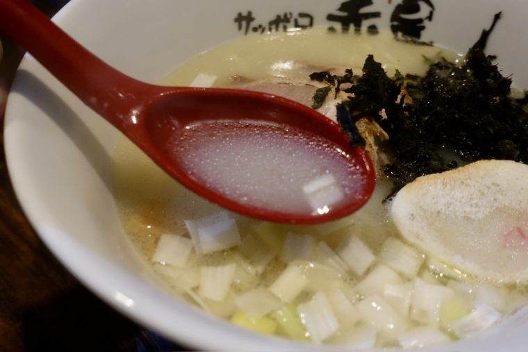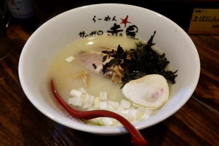 2025.07.03 夜 札幌最強コスパのラーメン、ここにあり@らーめんサッポロ 赤星 ラーメン・つけめん 札幌市 〜999円 ★★★☆☆ 札幌・狸小路の裏手、赤い星の看板が目印の『らーめんサッポロ 赤星』。創業は2004年。20年にわたり、札幌のラーメン文化を足元から支え続けてきた名店である。かつては一杯500円という信じられない価格で提供し続け、ついに600円に改定されたが、それでもなお庶民の味方であろうとする姿勢に揺るぎはない。一言で言えば、安くて、旨くて、まっすぐな店。 看板「塩ラーメン」。 白濁したスープは鶏をベースにしながら、濁りのある見た目に反してキレのある塩味がまず立ち上がる。動物系のクセは抑えられつつも、骨太な旨味がしっかりと支える構成。塩のシャープさと、旨味の厚みが織りなす一体感に、どこか潔さすら感じるスープだ。決して重たくはないが、芯のある味わいで、飲み進めるほどに輪郭が明瞭になっていく。 トッピングはホロっと崩れるチャーシューに、シャキッとしたネギ、そして磯の風味が広がる岩海苔。中細のちぢれ麺はスープとの絡みが抜群で、啜るたびにしっかりと塩味を引き連れてくる。札幌らしさを体現する麺とスープの緊張感のあるマリアージュが、この一杯の個性だ。 そして、このラーメンのもう一つの魅力が「味変」。卓上に置かれた「さばニンニク粉」が、その代表格だ。レンゲで数口スープを楽しんだ後、ほんのひとさじ投入することで、驚きの変化が訪れる。魚粉の力強い旨味と、ニンニクの刺激が合わさり、スープの奥行きが一気に増す。塩ラーメンの輪郭をぐっと際立たせ、食欲を倍増させる魔法の粉。食べ進めるにつれて、まるで別の一杯に生まれ変わるような感覚を味わえる。 この二段構えの楽しみ方こそ、『赤星』の真骨頂。600円という価格に詰め込まれたこの満足度は、他ではなかなか味わえない。シンプルさの中に、札幌のラーメン文化への愛と信念をしっかりと宿した一杯。観光客には驚きを、地元民には安心を。『赤星』は、札幌ラーメン界のスタンダードであり、灯台のような存在です。ご馳走様でした。 — らーめんサッポロ 赤星011-272-2065北海道札幌市中央区南三条西7-7 狸小路商店街https://tabelog.com/hokkaido/A0101/A010102/1000912/
