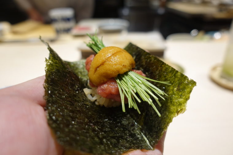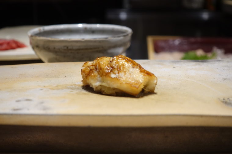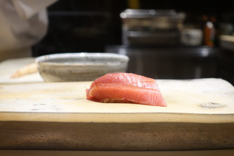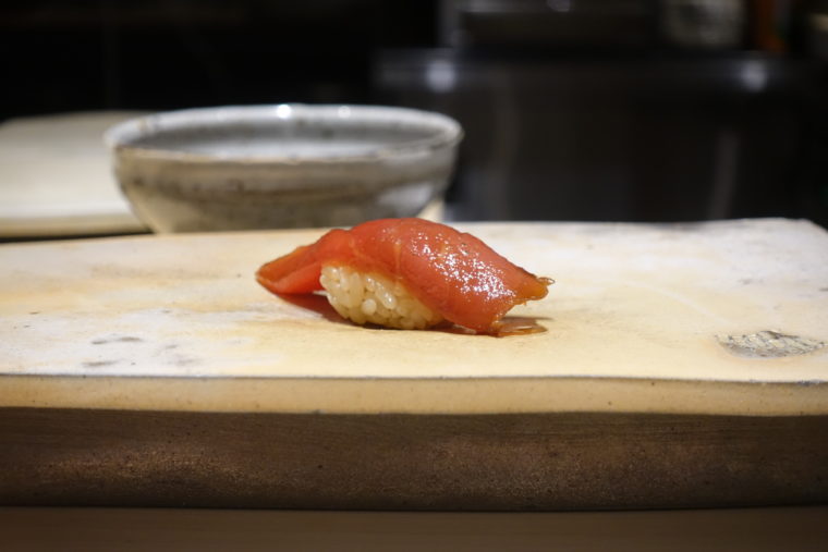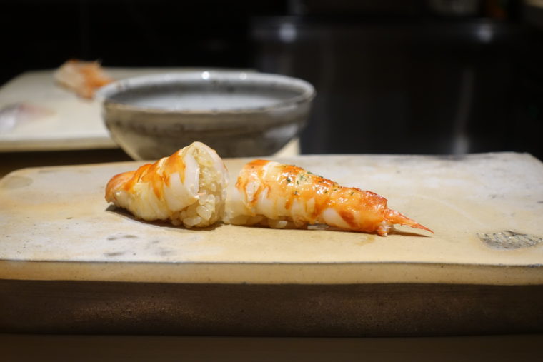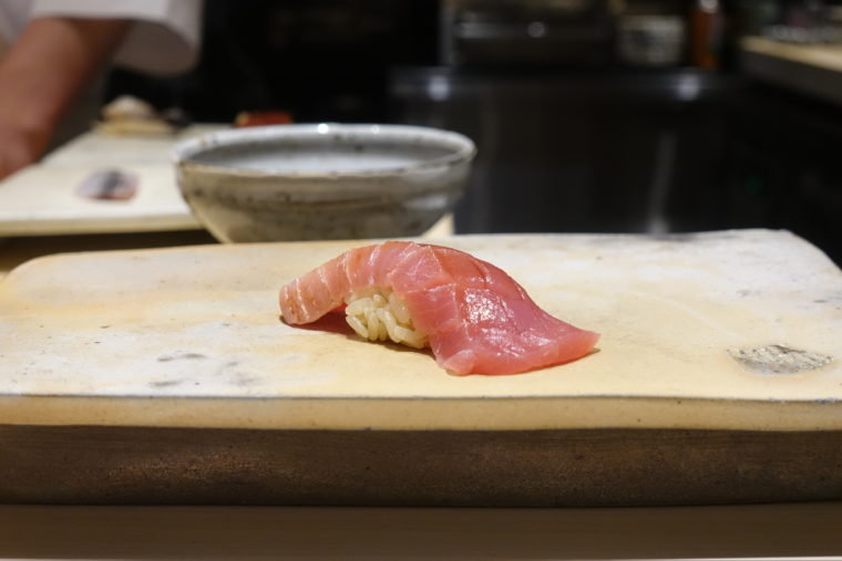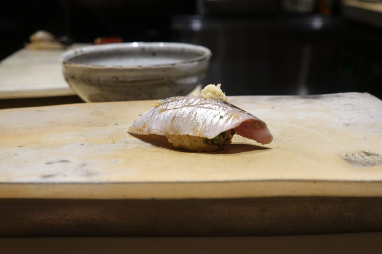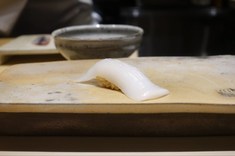 2025.07.09 夜 肩肘張らずに楽しめる銀座寿司。@鮨 昇 寿司 銀座・新橋・有楽町 10000円〜29999円 ★★★☆☆ 銀座の一角、地下へと続く階段を降りた先にある『鮨 昇』。2020年創業、若い店主がカウンターに立つ比較的新しい一軒だ。店内は静かで落ち着いた雰囲気。客席と仕事場の距離が近く、自然と手元に視線が集まる空気感。銀座の鮨店としては比較的リーズナブルな価格帯で、肩肘張らずに楽しめる設計も特徴のひとつだ。 この日のコースは、「冬瓜の海老そぼろ餡」からスタート。やさしい出汁と海老の旨味がじんわりと染みる、夏らしい清涼感のある一皿。そこからは、つまみと握りが交互に供される構成。リズムよく、重たくなりすぎない流れが心地よい。 つまみの立ち上がりは「鰹」「甘海老」「帆立」。いずれもシンプルに仕上げられ、素材の印象を素直に伝えてくれる。 続く握り一貫目は「アオリイカ」。塩と酢橘で仕上げた清涼感のある味わいに、小ぶりの赤酢シャリが寄り添う。サイズ感も含め、銀座らしい設計だ。 その後は「中トロ」 「鰯」 「真鯛」 「北寄貝」 「漬け」 「カンパチ」 「エボダイ」などがテンポよく続く。いずれも奇をてらわず、素材の持ち味をストレートに出す構成。 なかでも「鰯」の脂のノリ、「漬け」の塩梅には一工夫が感じられた。 つまみの後半では「煮蛤」や「のどぐろの酒蒸し」など。程よく温度をまとった「煮蛤」は、優しい出汁の含ませ方が心地よく、記憶に残る一皿に。 「のどぐろの酒蒸し」は、力強い旨味が一口の満足感を生み、コースの緩急を演出してくれる。 後半の握りには「車海老」 「大トロ」 「雲丹」 「穴子」といった定番ネタが登場。「車海老」の温度感や、「穴子」のやわらかい仕上がりなど、基本をしっかり押さえている印象。 クライマックスには「とろたく」。脂と香り、食感が一体になり、終盤の盛り上げ役としてよく機能していた。 デザートは「玉子」から「坊ちゃんかぼちゃの金団」へ。甘さ控えめで、食後の余韻を整えてくれる穏やかな締めくくり。 銀座でこの価格帯を実現し、シャリのサイズやコース構成も土地に合わせて設計している点には、しっかりとした意図を感じる。つまみと握りを交互に出すスタイルも食べ疲れしにくく、構成としてよく考えられている。高級鮨がひしめく街で、手頃に提供するというのも、ひとつの生き残りの技術か。 ご馳走様でした。 — 鮨 昇050-5890-0763東京都中央区銀座7-12-4 友野本社ビル B1Fhttps://tabelog.com/tokyo/A1301/A130101/13269895/