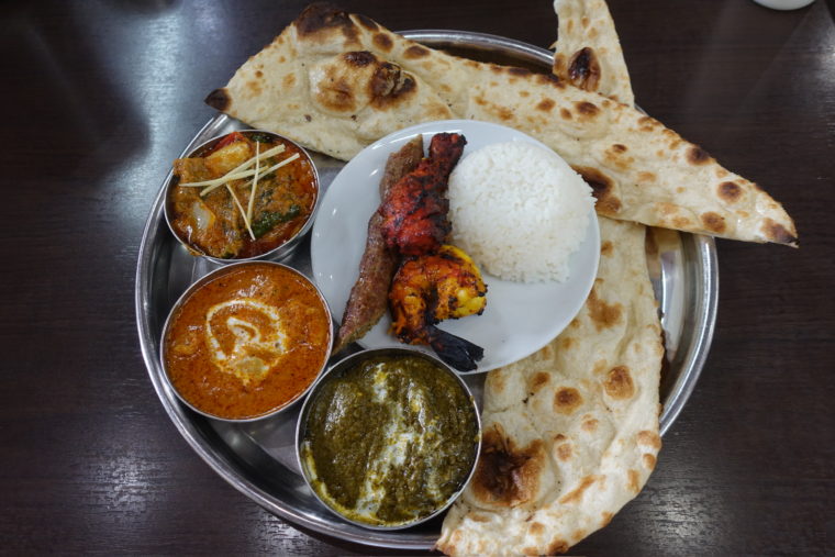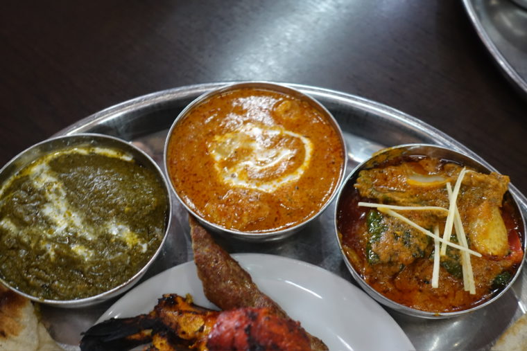 2025.08.12 昼 選べる楽しさ、広がる旨さ。贅沢ターリーで満腹満足。@Handi レストラン カレー 柏・松戸 1000円〜2999円 ★★★★☆ 千葉県野田市、幹線道路沿いに赤い屋根と看板が目印の『Handi レストラン』。2011年創業、地域に根ざして10年以上、本格インド・パキスタン料理を提供し続ける人気店。特にランチタイムは、地元客やスパイス好きが押し寄せ、席が埋まるのもあっという間。看板メニューの激安バイキングは940円という驚異の価格ですが、この日はあえて豪華仕様の「ハンディスペシャルターリー」を選択。 お値段は約2,000円ながら、ナンとライス、サラダ、デザートに加え、選べるカレー3種、さらにシークカバブ、タンドリーチキン、タンドリープラウンまで揃う贅沢セット。二人で訪れれば、6種のカレーをシェアできる。そう考えると、これもまた破格と言っていいでしょう、 「チキンカレー」はスパイスの香りと深いコクが共存する王道の旨さ。「マトンマサラ」はピーマンや玉ねぎが肉の濃厚さを引き立て、噛むたびに香りが弾ける。「パラクパニール」はほうれん草の自然な甘みとガーリックの香りが一体となり、まろやかさの中に芯のある味わい。 「フィッシュカレー」は魚介の旨味がルーに溶け込み、香り豊か。「ヒンディーマサラ」はオクラが主役となり、複雑なスパイスと絡まった絶品カレーで、「バターチキン」は甘さ控えめでスパイス感が際立つ仕上がり。 タンドール窯で焼き上げた「タンドリーチキン」は香ばしい焦げ目とジューシーな肉汁、「タンドリープラウン」は海老の旨味とスパイスの調和が見事。「シークカバブ」は肉の旨味と香草の香りが濃厚に絡み合う。ナンはパリッともっちりの二重奏、白米で食べてもまた違った満足感があります。最後はバニラアイスで舌を優しくクールダウン。 『Handi』の真髄は、現地の味を守りながらも圧倒的なボリュームと価格で提供する懐の深さ。バイキングで胃袋を満たすもよし、ターリーで多彩な味を堪能するもよし。混み合うランチも納得の、スパイス好き必訪の一軒。ご馳走様でした。 — Handi レストラン04-7157-1142千葉県野田市目吹1508-1https://tabelog.com/chiba/A1203/A120305/12026828/