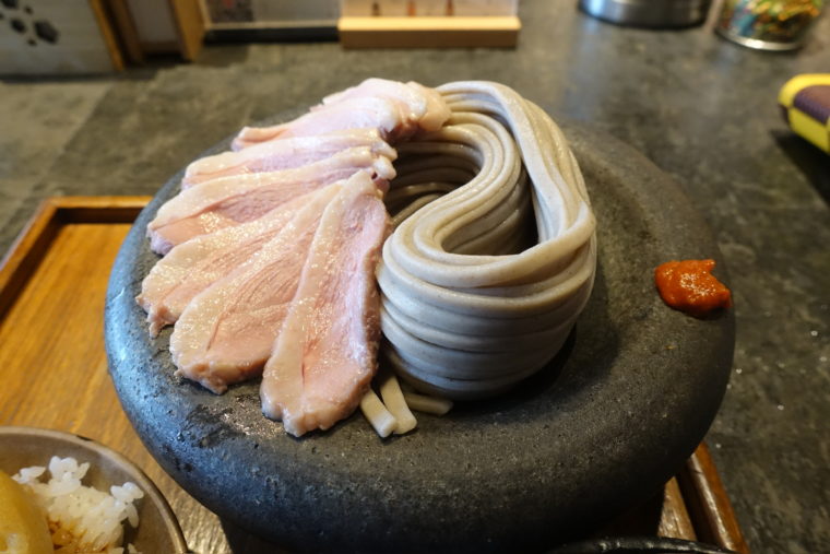 2025.08.15 昼 裏原宿で出会う、”映え”の蕎麦@BASO そば 原宿・表参道・青山 1000円〜2999円 ★★★☆☆ 裏原宿に店を構える『BASO』。黒壁のシンプルな外観の前には行列る。ただ、並ぶのが苦手な人も安心してほしい。専用アプリを使えばファストパス的に順番を管理できる仕組みが用意されており、裏原らしいスマートさも。そして、その先に待っているのは蕎麦に対する新しいアプローチだ。 第一印象は、極太の蕎麦。石皿にうねりながら盛り付けられる姿は、まるでつけ麺のようなインパクト。添えられた低温調理の鴨はしっとりと柔らかく、淡いピンク色が美しい。脂の旨味は上品で、甘めに仕立てられたつけ汁と合わさることで、口の中にやさしい旨味が広がる。 ただ、全体が穏やかにまとまりすぎる印象もあり、そこに力を発揮するのが味変アイテムの数々。豆板醤を加えればキリッとした辛味が立ち、薬味や揚げ玉で食感や香りの変化も楽しめる。 そしてセットの「天玉飯」。白ごはんの上に半熟卵天をのせ、甘辛いタレがとろり。サクッとした衣の香ばしさと卵のまろやかさが混ざり合う。蕎麦と交互にいただけば、ボリューム的な満足度はさらに増す。 総じて『BASO』は、伝統的な蕎麦屋の枠の中ではなく、裏原らしい遊び心を持った一軒。蕎麦を“映え”として楽しみつつ、自分好みにカスタマイズしていく体験がここの魅力だろう。完成度としてはまだ伸びしろを感じるものの、その新しいアプローチは一度試してみる価値がある。ご馳走様でした。 — BASO東京都渋谷区神宮前6-11-7https://tabelog.com/tokyo/A1306/A130601/13285237/