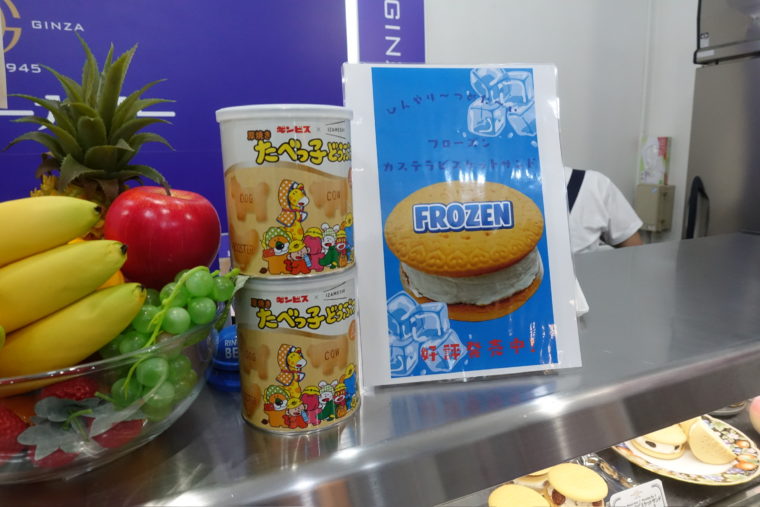 2025.08.18 昼 老舗の歴史が生んだ、賞味期限1時間のビスケットサンド@銀座ベーカリー デザート 銀座・新橋・有楽町 〜999円 ★★★★☆ 時は戦後直後の1945年、銀座一丁目。焼け跡に誕生したのが『銀座ベーカリー』。菓子の製造販売に加え、レストランも営みながら、洋菓子文化を街に広めてきた。 代表作には「バターしるこ」「ギンビスコ」、そして今も親しまれる「アスパラガスビスケット」。やがて菓子製造に特化し、〈銀座+ビスケット=ギンビス〉と改め、国民的ブランドへと成長していく。その過程で生まれたのが、子どもから大人まで愛され続ける「たべっ子どうぶつ」。動物型ビスケットに英単語をプリントする発想は、学びと遊びを同時に楽しめる革新だった。そんな遊び心もまた、このブランドを象徴している。 その原点たる「銀座ベーカリー」が、数十年の時を超えて再び銀座に息を吹き返したのがこの場所だ。看板商品は「カステラビスケットサンド」。カステラ風味の丸いビスケットに、分厚く盛られた「生クリーム」を挟んだ大胆な構成。しかも賞味期限はわずか1時間。鮮度そのままに味わうからこそ成立する、一期一会の菓子だ。 「プレーン」は、サクッと香ばしいビスケットに、ふわりと軽やかなクリームが寄り添うシンプルな一品。素直な組み合わせだからこそ、素材の調和がストレートに伝わる。 「ラムレーズン」はフローズン仕立て。芳醇なラムの香りとレーズンの粒感が弾け、時間とともにクリームがまろやかに溶け出す。その変化が楽しく、甘みと香りの余韻が大人のデザートに仕上がっていた。 さらに試食でいただいた「Gスティック」。フレーバーは枝豆・野菜・セサミの3種類。共通して塩気がしっかり効いていて、酒のつまみにもぴったり。野菜は軽やかに、セサミは香ばしさ全開で、どれも噛むほどに味わい深い。手土産としても優秀な存在だ。 銀座の街に再び刻まれた老舗の息吹。懐かしさを抱えつつ、新しい食感や楽しみ方で現代に蘇った甘味たち。とりわけ1時間という刹那的なサンドの体験は、ここでしか味わえない特別な時間。歴史と遊び心が同居するこの一軒は、銀座散歩の締めにぴったりだ。ご馳走様でした。 — 銀座ベーカリー03-3538-0155東京都中央区銀座1-5-5https://tabelog.com/tokyo/A1301/A130101/13157275/