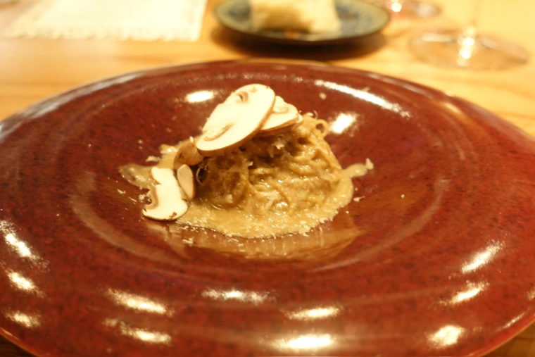 一方のマッケロニーニは、三種のきのこの旨味を凝縮したソースが絡み、低温発酵のニュアンスが奥行きを加える。仕上げに削られたフレッシュなきのこが香りを広げ、噛むごとに違う表情を見せてくれる。