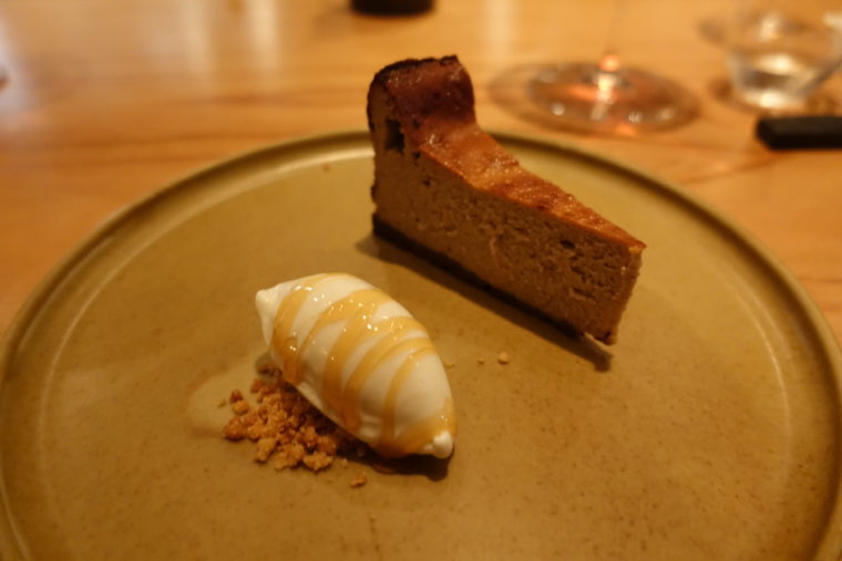 デザートは「エスプレッソのチーズケーキ」と「水牛ミルクジェラート」。濃厚ながら重さを感じさせないチーズケーキに、ミルキーで爽やかなジェラート。最後まで愛情を込めた手仕事で仕上げる。