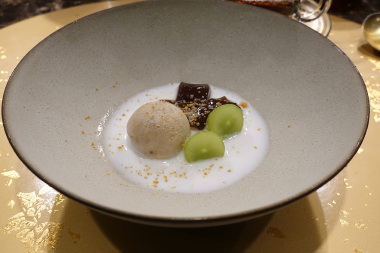 デザートは「特製デザート 烏龍茶アイス」。口に入れた瞬間、ふわりと香るのは焙煎香。ほろ苦さが甘みを引き締め、食後の余韻を落ち着かせる。最後にお茶の余韻が鼻に抜け、静かな幕引きとなる。