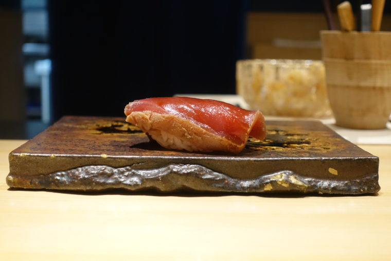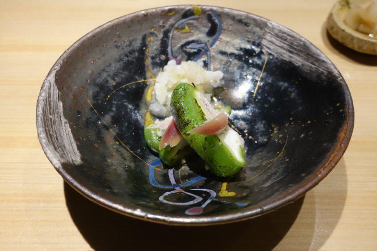 2025.09.14 夜 独自路線を走る寿司屋の挑戦@鮨くにみつ 寿司 中野~西荻窪 10000円〜29999円 ★★★☆☆ 東中野の駅前、2階に構える寿司屋『鮨くにみつ』。2022年創業とまだ若いが、掲げる哲学は明快だ。「他と同じことをやっても仕方ない」。江戸前の王道に背を向けるのではなく、自らの文脈を積み重ねていく姿勢こそが、この店の個性だろう。海外経験豊富な大将は英語も自在、ジョークを交えて場を和ませる。インバウンドに愛されていることが伝わる。 シャリは米酢で穏やか、やや大ぶりでかため。土台はクラシックに見せながら、のせるネタは独自路線だ。 「甘海老」は静岡茶葉で締め、甘さを清涼感で整える。 「桜鱒」は温かい木の子のすりながし仕立て、香茸で森の香りを重ねる。 「真鯛」は四日熟成にへべすを添えて、酸味でキレを加える。 「帆立」は北海道産を低温で火入れ、鰹出汁由来の香りが立ち上る。これがこの日のMVP。 「鰹」は玉ねぎジャムを合わせる変化球。甘さではなく酸と醤油でまとめ、赤身の力を増幅させる。 「春巻き」は寝かせたカンパチと大浦牛蒡を包み、味噌と落花生、山椒が効いた一品。寿司屋の枠を飛び越える。 「とろとエシャロット」は味噌の強烈な塩気と脂が押し寄せる巻物。 「秋刀魚」は酢の粕を使った青ネギペーストをのせ、秋刀魚の脂を受け止める。 「真魚鰹」は一週間寝かせ、茶葉の佃煮を添える。熟成の旨味に苦味が寄り添う。 「ピーマンの鯖詰め」はかなり新しいシルエット。鬼おろしとザーサイ浅漬けを添える。 「車海老」はスチームで蒸し上げ、ふわっと柔らかく、素材の甘さをそのまま届ける。 「インド鮪」は漬けで。漬け地の旨味とシャリの酸が溶け合い、王道の一手を自分の色にしている。 「紫雲丹」は根室産を塩水で扱い、濃厚さと清涼感を両立。口に広がる瞬間が幸福感が広がる 「鮪のへしこ」は自家製。最後は鮪節の出汁で茶漬けで楽しませる。 「穴子」はタレも塩も使わず、火入れと骨抜きの技だけで勝負。個人的には塩をふった方が旨いとは思うが。笑 仕上げに「かっぱ巻き」と 「味噌汁」。 デザートにはプリンやマカロンなど、海外も意識したような甘味で締める。このあたりにも、大将の海外経験とインバウンドへの目線が透けて見える。 もちろん、挑戦がすべて成功しているわけじゃない。だが、「帆立」や「紫雲丹」に見られる完成度、そして「鮪のへしこ」や「春巻き」に表れる独創性。伝統を守る寿司屋ではなく、寿司を更新する寿司屋という感じ。ご馳走様でした。 — 鮨くにみつ050-5589-6674東京都中野区東中野5-3-6 東中野トーシンビル 2Fhttps://tabelog.com/tokyo/A1319/A131901/13274106/
