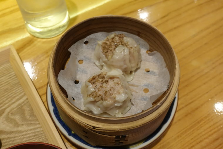 名物の「鶏焼売」は蒸篭仕上げ。鶏ならではの軽やかさとジューシーさがあり、胡椒の効きも程よい。豚肉の焼売と比べるとすっきりとした印象で、確かに名物として推すのも納得できる。