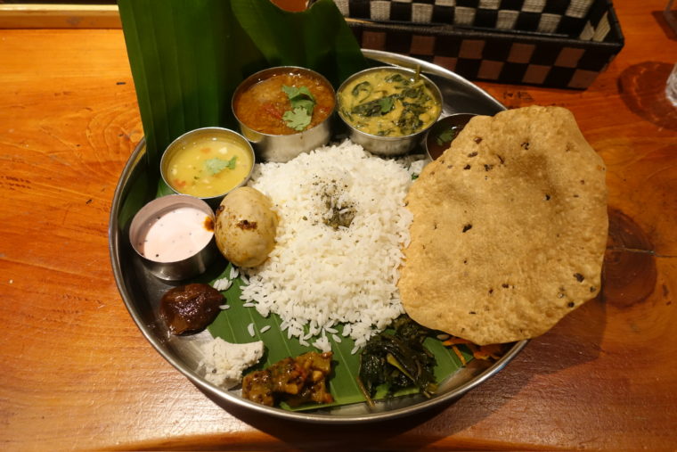 2025.10.04 昼 南インドと日本の土が出会う皿@南インド料理 葉菜 世界料理(アジア) 船橋・市川・浦安 1000円〜2999円 ★★★★☆ 八千代・勝田台の住宅街に、やわらかなスパイスの香りを漂わせる一軒がある。『南インド料理 葉菜』。2009年創業。店名の通り“葉と菜”を掲げ、野菜を主役にした南インド食堂だ。店主は自家栽培や地元の農家から届く旬の野菜を使い、スパイスの力でその魅力を最大限に引き出す。アーユルヴェーダの思想を背景に、油を控えめに、体にやさしいミールスを作り上げている。 スペシャルのミールスでは、ベジ(菜食)とノンベジ(肉・魚)から一品ずつ選ぶスタイル。この日はベジから「ホウレン草のクートゥ」、ノンベジから「ポークビンダルー」をチョイス。ふたつの異なる世界が、一枚のバナナリーフの上で自然に調和する。 「ホウレン草のクートゥ」は、豆と野菜をココナッツで優しくまとめた穏やかな一皿。ホウレン草の青みと豆の甘みがほどよく重なり、スパイスは控えめにして素材の味を際立たせる。安心感のある味わいだ。「ポークビンダルー」はその対極。ビネガーの酸味が立ち、トマトと玉ねぎの甘みが奥行きを加える。豚肉はほろりと柔らかく、酸味と旨味が交差する中にしっかりとしたキレがある。食べ進めるごとに、辛味・酸味・甘味のバランスが心地よく変化していく。 副菜の一つひとつも丁寧な仕事ぶり。「ダルカレー」は豆の旨味で舌を整え、「季節のサンバル」にはとうがんを使用。野菜出汁の滋味が優しく広がる。「ラッサム」はトマトとタマリンドの酸味で輪郭を引き締める。さらに、「人参のポリヤル」はマスタードシードの香ばしさが印象的で、「空芯菜のスパイス炒め」は軽やかな土の香りを残す。「ゴーヤのピクルス」や「デーツのチャツネ」、「ココナッツチャトニー」など、小皿が生む味のコントラストが楽しい。 主食は南インドの細長い米。軽やかで粘りが少なく、サンバルやラッサムとの相性は抜群。混ぜ合わせるほどに味の層が変化し、スパイスと野菜の個性が自然に溶け合う。最後の一口まで飽きず、むしろ次の一匙を誘う。 店主・藤田さんはインドを旅し、現地の食文化を学んだのち、日本の土壌とスパイスの調和を探求してきた料理人。畑で採れる野菜の生命力を、そのままスパイスの香りにのせて届ける。その姿勢が、皿の上に静かな説得力を与えている。『南インド料理 葉菜』。それは、南インドの知恵と日本の土が交わる場所。ベジもノンベジも、どちらも同じ“自然の恵み”として一枚の皿に共存している。穏やかで芯のある南インド、ここにあり。ご馳走様でした。 — 南インド料理 葉菜047-482-8974千葉県八千代市勝田台1-13-32 MTビル 1Fhttps://tabelog.com/chiba/A1202/A120204/12012667/