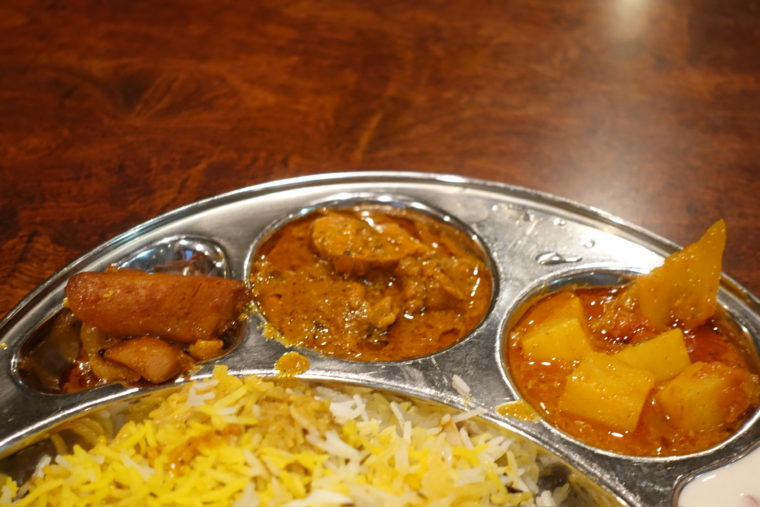 2025.10.13 昼 ふわふわビリヤニに導かれて。@シンズキッチン カレー 大阪市 1000円〜2999円 ★★★★☆ 大阪・日本橋。喧騒を少し離れた通りに、スパイスの香りで存在を知らせる一軒『シンズキッチン』。2009年創業、いまや大阪のインド料理好きなら一度は耳にしたことのある店だ。店名から察するに、きっと“シンさん”という人物がこのキッチンを率いているのだろう。 看板の「チキンビリヤニ」は、銀のプレートに盛られた一皿。口を入れた瞬間、ふわふわとほどけるバスマティライスが現れ、スパイスの香りが層を描くように広がっていく。その下に隠れているのは、スパイスでしっかりとコーティングされたチキン。米と混ざり合うたびに、香ばしい旨味とスパイスの熱が立ち上がり、香りのリズムが次々と変化していく。クローブやカルダモンの爽やかな香りが鼻を抜け、チキンの柔らかな旨味がそれを包み込む。ゆで卵が全体の流れをやわらかく整え、余韻に穏やかなアクセントを残す。 添えられたカレーたちも手練れの仕事。スパイスでコーティングされたソーセージは、噛むほどに香りが弾ける一品で、スパイスの深みと香ばしさのバランスが絶妙。ポテトのカレーは素材の甘さをしっかり残しつつ、スパイスの輪郭を優しく立たせている。チキンカレーは滑らかな口当たりで、香りと塩味のバランスが絶妙。単体で食べても高い満足感を得られるだろうと感じさせる完成度だ。 本場の味をそのまま持ち込むのではなく、日本の舌になじむ温度で仕立てる。そのバランス感覚が、この店の魅力を際立たせている。大阪のインド料理界でも名を響かせる一軒として、多くの人をスパイスの香りで魅了し続けているのも納得だ。ご馳走様でした。 — シンズキッチン06-6632-4433大阪府大阪市中央区日本橋 1-21-20 丸富パールビル 1Fhttps://tabelog.com/osaka/A2701/A270202/27044516/