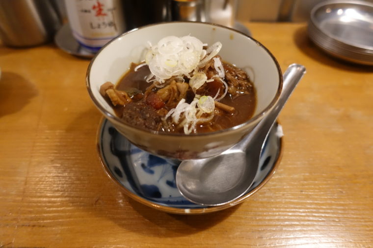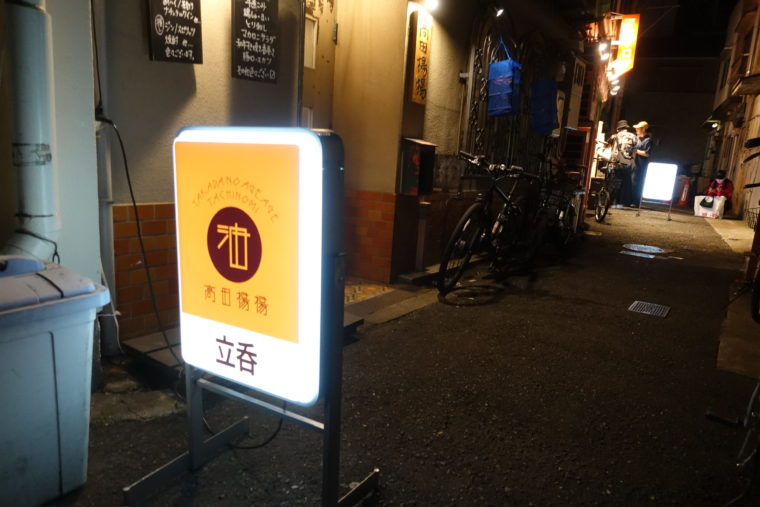 2025.10.13 夜 裏なんば、立ち飲みの油と音。@ 高田揚揚 居酒屋・定食 大阪市 1000円〜2999円 ★★★☆☆ 大阪・難波千日前。ネオンの裏側、人ひとりがやっと通れるような細い路地を進むと、ふっと現れる光の看板。そこが『高田揚揚』。どこか「高田馬場」を連想させるような響きだが、舞台はれっきとした大阪の裏なんば。この地に数多くの立ち飲みを展開する“クラマ計画”の系列店で、ここもその系譜に連なる。気取らず、けれど手は抜かない。そんな哲学が、この店の油の香りに宿っている。 まずは「牛煮込み」。赤味噌仕立ての濃厚な香りが立ち上がり、口に含むと牛すじのコラーゲンがとろりと溶ける。甘辛の味わいに、刻み葱の清涼感がアクセント。こんにゃくのぷるぷるとした食感も楽しく、定番ながらしっかり仕事を感じる一品だ。七味を追加でもらえば、さらにつまみとしての機能を確かなものに。 「鶏しゅうまい」は、見るからに肉厚。ひと口頬張ると、鶏の旨味がぎゅっと詰まった肉汁がじんわりと溢れ出す。ふっくらと蒸し上がった生地に、ほどよい塩気が寄り添う。シンプルながら、噛むほどに真面目な味が顔を出す。 「しっとりささみフライ」は、この店の“揚揚”たる所以を感じさせる。中心はほんのりレアで、しっとりとした食感。衣は軽やかに立ち上がり、油の温度管理の巧さを物語る。惜しむらくは、この日の油がやや重く、香りに雑味が残ったこと。だが、その完成度には名折れなし。 そして締めにいただくのが、店の看板「高田の玉子カツサンド」。ふわりとした白パンの間に、サクッと揚がったカツととろりとした玉子の層。パンの甘み、衣の香ばしさ、卵のまろやかさが一口の中で自然に重なり合う。立ち飲みの一皿としては十分すぎる完成度だが、この夜は少しだけ油が重く、後味にわずかな滞りが残った。それでも、食べ終えた瞬間の満足感は確かなものだった。 『高田揚揚』は、立ち飲みの空気感の中に、確かな満足感を作る店だ。揚げの音とともにゆるやかに気分が上がっていく。油の香りに包まれながら、グラスを傾けるその瞬間が、この店のいちばんの魅力だ。ご馳走様でした。 — 高田揚揚大阪府大阪市中央区難波千日前4-35https://tabelog.com/osaka/A2701/A270202/27141657/
