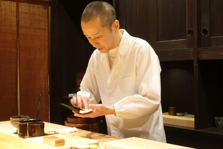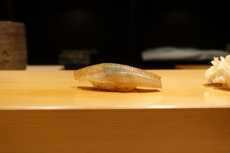 扉を開けた瞬間、空気が変わる。白木のカウンターが6席、磨かれた木目と包丁の音だけが響くその空間には、無駄なものが一切ない。店主・駒田権利氏は“あり輝の門下”として知られる職人。だが、その凄みは出自だけでは語れない。江戸前の技を継ぎながら、脂も酸も重ねすぎず、素材の持つクリアな味わいで勝負する。