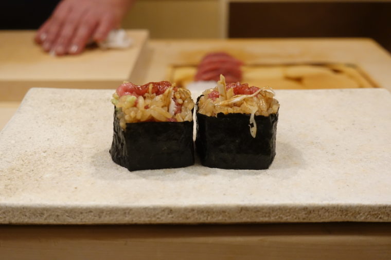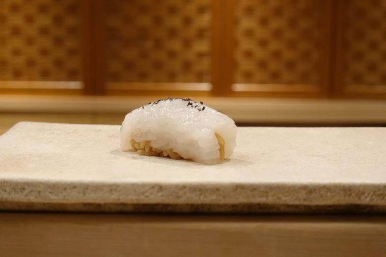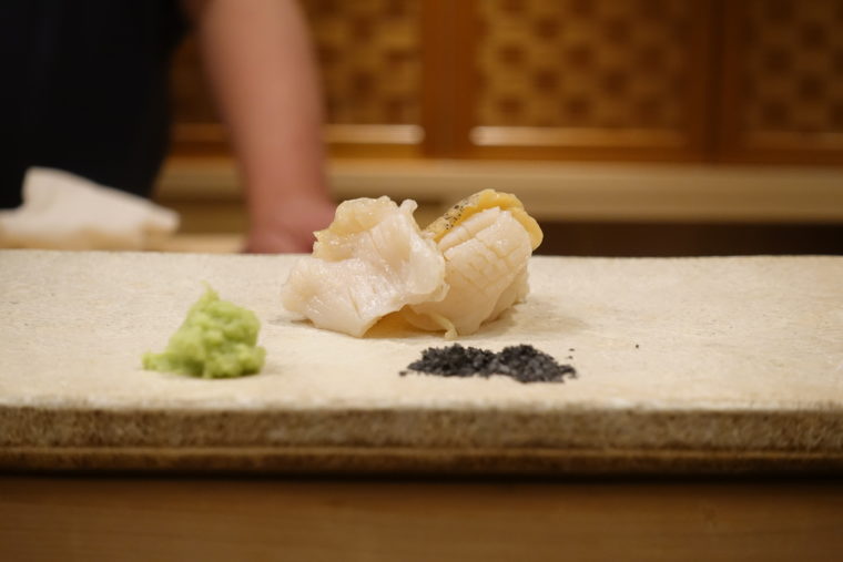 2025.11.02 夜 骨太な鮨、銀座にて@鮨 冨味 寿司 銀座・新橋・有楽町 10000円〜29999円 ★★★☆☆ 銀座の片隅、控えめな灯りに浮かぶ『鮨 冨味』の看板。店内は白木のカウンターに静かな照明、所作も穏やか。だがその雰囲気とは裏腹に、料理は全体的に“力強さ”を前面に押し出す。とにかくカットが厚い。シャリも赤酢をしっかり利かせており、輪郭の太い構成。まるで、大将のどっしりとした佇まいをそのまま形にしたような鮨だ。 つまみはやはり全体的にボリュームがあり、どれも一皿の主張が強い。 「真鯛と蕪のみぞれ餡」お椀代わりの温前菜。鯛の旨味に蕪の甘みを合わせる素直な構成。優しいが、やや単調。 「八寸」河豚の唐揚げを中心に、銀杏、栗、むかごなど、季節の顔ぶれ。 「マハタの刺身」厚切りで噛み応え十分。竹炭塩が魚の輪郭を引き締める。 「つぶ貝」歯応えの後にミルキーな甘みが広がる。 「鰹」漬けにして厚みを出す。「鰆の焼き物」皮の香りが立ち、身は柔らか。やはりサイズ感は堂々としたもの。 「焼き胡麻豆腐」香ばしい表面と滑らかな中身。 握りは赤酢のシャリがはっきりと主張し、切りつけの厚みと重なって輪郭のある味わいに。 「中トロ」石司の鮪。脂の質は良いが、厚みと温度が重なりやや鈍い。 「墨烏賊」包丁目が細かく、噛むほどに甘みが滲む。 「ノドグロ」脂の強さが厚みに比例する。 「とろたく巻」鰹節の香りがアクセント。ボリュームのある巻物。 「小肌」酸の掛け算。 「赤貝」肉厚で香り高く、噛みごたえを楽しむタイプ。 「車海老」塩と柑橘で。シルエットも面白い。 「雲丹」竹炭塩で香りを添える。 「漬け」強めのづけ地で赤酢に合わせる直球勝負。 「穴子」ふっくらと煮上げ、煮詰めはやや甘め。 「玉子」…プリンのような柔らかさと甘さ。デザート感覚の一品。 全体として、“豪快で骨太”。厚みのある切りつけと赤酢のシャリで押し切る構成は、最後まで一貫して力強い。味の重なりにやや粗さは残るものの、その勢いがこの店の魅力なのかも。ご馳走様でした。 — 鮨 冨味050-5600-7849東京都中央区銀座8-7-19 すずりゅうビル 2Fhttps://tabelog.com/tokyo/A1301/A130101/13287552/