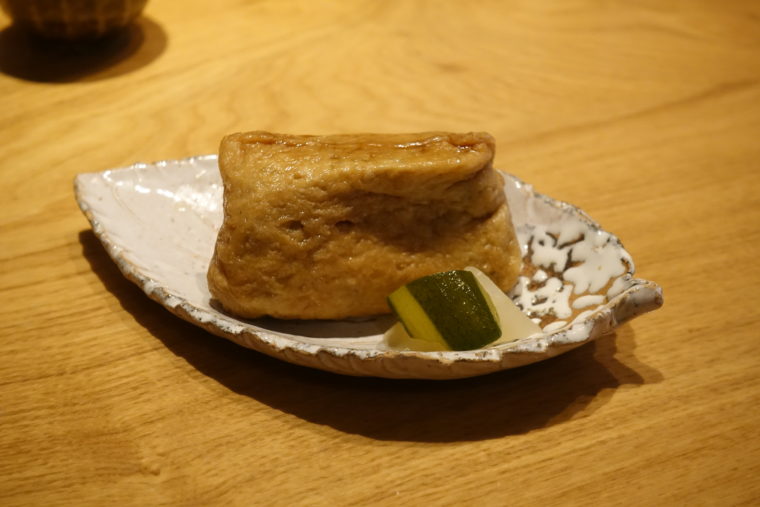 忘れていけないのは、名物の「自家製そばいなり」。ふっくら煮含めた揚げの中には、そばの実や野菜の細かな具がぎっしり詰まり、口に入れると具材の食感が先に立つ。出汁の香りと同時に、ひとつひとつの素材の存在感が際立ち、全体に噛み応えのある仕立て。