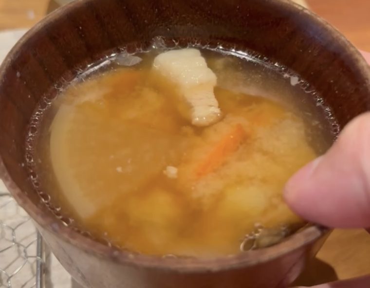 そして、とんかつを支える脇役たちがまた強い。調味料はどれも“肉の表情を変えるため”に用意されていて、昆布塩に七味を合わせた香りの厚み、わさびをわさび塩として出す工夫など、どれも丁寧に設計されている。一口ごとに違う角度から豚が立ち上がってくる感覚がある。さらに、ご飯はつやつやと粒が立ち、噛むほどに甘みが広がる理想的な炊き上がり。豚汁は具材の豚がしっかり存在感を持ち、味噌と豚の旨みがまっすぐに響く。