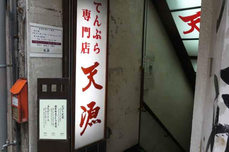 2025.11.13 昼 変わらない仕事が積み上げる、豊橋の天ぷら@天源・天ぷら専門店 天ぷら 田原・豊橋・新城 1000円〜2999円 ★★★★☆ 豊橋駅の東側、ひっそりと続く階段を降りた先に現れるのが、六十年以上この街で天ぷらを揚げ続ける老舗『天源・天ぷら専門店』。大将と女将さんが静かに営むカウンターで、銅鍋の前に立つ大将の所作を眺めているだけで、この場所が長く愛されてきた理由がなんとなく伝わってくる。 この日は「天ぷら定食」を選択。まず柱となる海老四本が据えられ、その周りを季節の野菜五種と魚の一品が静かに彩る。そこへサラダや茶碗蒸しがそっと添えられ、御飯と味噌汁が全体をまとめるという流れだ。これで2420円というのだから、いかに良心的なお店であるかが伝わってくる。 まずは主役の「海老四本」。衣の軽さが海老の甘さをすっと引き立て、噛んだ瞬間のぷりっとした弾みが心地よい。薄衣だからこそ中の身が素直に主張し、後味も軽やか。四本という量でありながら、不思議と重さを感じさせないのは、油の扱いの上手さゆえだろう。 「ヤングコーン」は、噛んだ瞬間に瑞々しさがはじける。穀物らしい甘みが衣の隙間から立ち上がり、そのまま余韻へとつながっていく。 「蓮根」は厚めの切り方で、ほくっとした食感にシャクッとした歯切れが混ざる。衣が薄いからこそ、蓮根そのものの味が素直に響く。「茄子」はとろりと火が入り、噛むと熱い汁がじゅわっと広がるタイプ。油との相性が良く、茄子の甘みがふわりと膨らむ。 「舞茸」は香りのボリュームが印象的で、揚がった直後の湯気に鼻を近づけると、茸の香りがしっかり立ち上がる。 締めの「薩摩芋」は中心までしっとり火が入り、自然の甘さがゆっくりと広がる。ここまで薄衣で進んできた流れの中で、少し厚みのある甘さが心地よいアクセントになっていた。 ご飯は粒立ちが良く、揚げ物の油と出汁の香りが混ざると、思わずもう一口と手が伸びる。味噌汁はきれいな出汁の余韻で、食後の口をやわらかく整えてくれる。 脇を固める皿としては、まず口ならしに登場するのが「大根のサラダ」。千切りの瑞々しさがすっと喉を通り、揚げ物に向けた身体の準備運動のような役割を果たしてくれた。 そして終盤にそっと置かれる「茶碗蒸し」。出汁を芯にした滑らかな味わいで、ふっと肩の力が抜ける一品。 静かに積み重ねてきた時間が、そのまま皿の上に表れるような店だった。揚げたてが並ぶたびに、大将の丁寧な仕事がじわりと伝わってくる。豊橋で落ち着いて天ぷらを味わいたい時、ふと思い出したくなる場所である。ご馳走様でした。 — 天源・天ぷら専門店0532-54-9002愛知県豊橋市広小路1-42https://tabelog.com/aichi/A2306/A230601/23026087/