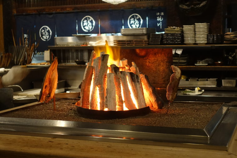 2025.11.14 夜 囲炉裏の前で、焼き魚の原点に触れる@陸蒸気 居酒屋・定食 中野~西荻窪 5000円〜9999円 ★★★★☆ 中野の路地に、落ち着いた雰囲気で佇む『陸蒸気』。1970年代に創業し、1992年に改装されたという歴史ある一軒だ。津軽出身のオーナーが手がける魚料理を中心とした構成で、16時の開店とともに客が入り、夕刻には席が埋まるほどの人気を保つ。外観は古い駅舎を思わせ、店名の「陸蒸気」は蒸気機関車を指す言葉に由来する。落ち着いた雰囲気の中で食事を楽しめるのがこの店の土台だ。 そして、この店を語るなら、どうしてもここを外せない。店の中央に鎮座する大きな囲炉裏が、この店のすべての景色を決めている。赤々と燃える炭火はただの調理設備ではなく、この空間の中心として息づいている。囲炉裏を囲むように客が座り、火を相手にした職人の所作が続いていく。その揺らぎが料理の香りや質感を作り出し、この店ならではの食の温度を形づくっている。 料理はまず「石垣鯛の薄造り」。脂の旨味を軽やかに伝え、薬味の爽やかさが輪郭を整える一皿だ。 「さつま揚げ」は素朴ながら魚の甘みがふわりと立ち、丁寧な仕込みが伝わる。 囲炉裏の実力が最もよく表れるのが焼き物だ。共通して感じられるのは、皮目の香ばしさと塩の当て方の的確さ。子持ち鮎は、火で引き締まった皮の香りと卵の旨味が自然に重なり、噛むほどに味わいが深まる。 「銀だら」は塩気が脂の甘みを引き締め、照りのあるタレとも調和して心地よい余韻を残す。 「きんき」は皮をかじった瞬間に香りが立ち上がり、身の締まりと脂の厚みを素直に引き出してくれる。どの魚も、囲炉裏の火がもたらす皮目の香りと塩気のバランスによって、酒との相性まで自然に整っていく仕上がりだ。 締めには名物「田舎むすび」。一合ほどの米を包んだ堂々とした姿だが、海苔の香りと米の甘さがまっすぐ伝わり、鮭の塩気が心地よく寄り添う。焼き魚で温まった体を優しく落ち着かせてくれる。 接客も丁寧で、焼き魚の取り分け方まで気を配ってくれる。囲炉裏の熱気と穏やかなサービスが、料理の印象をより柔らかくしていた。総括すると、囲炉裏という唯一無二の舞台を中心に、魚の旨味と炊きたてのご飯の幸福感を静かに積み重ねる店。火の温度と素材への誠実さが、食事そのものの魅力を素直に引き出してくれる。気がつけばまた足を運びたくなる、そんな落ち着いた良さがここにはある。 ご馳走様でした。 — 陸蒸気03-3228-1230東京都中野区中野5-59-3https://tabelog.com/tokyo/A1319/A131902/13000216/