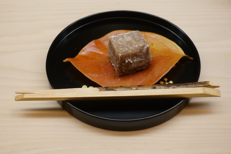 甘味の「胡桃の葛焼き」は、素朴な見た目に反して構成が緻密。葛のぷるんとした弾力の中に香ばしい胡桃のコクが忍び、コース全体の余韻を静かにまとめてくれる。強烈な甘さで押し切るのではなく、出汁の世界からすっと日常へ戻してくれるような、柔らかな着地だ。