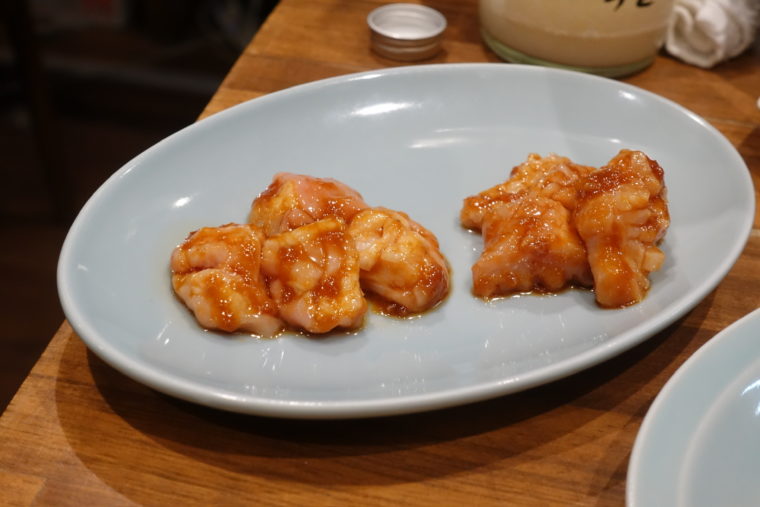 「ギアラ」は赤身の力強さを感じる味わいで、「上ミノ」はザクザクとした歯切れの快感が心地良い。どのホルモンも鮮度が旨味の芯を作っていると実感させてくれる。