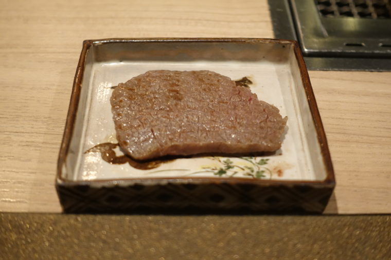 次に登場するのは、タレ焼き。赤身と脂のバランスの違いをそのまま楽しめる流れ。「シンシン」は赤身のきれいな旨味がまっすぐに伝わり、「サブトン」は脂の厚みと濃い甘味がしっかり広がる。それぞれの特徴が素直に現れる焼き上がりで、タレとの相性も自然にまとまっていた。