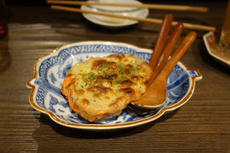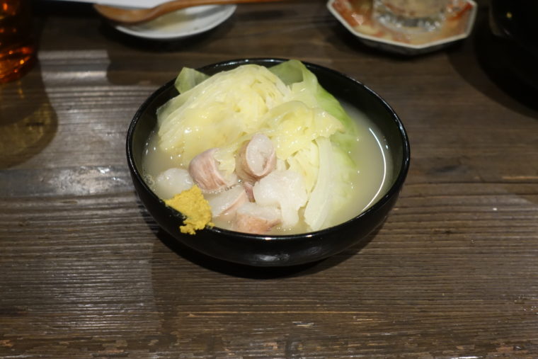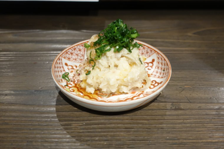 2025.11.27 夜 鶏白湯おでんで、立ち呑み。@ぽんしゅや 三徳六味 四条烏丸店 居酒屋・定食 京都市 5000円〜9999円 ★★★★☆ 京都・四条烏丸の細い路地にふっと灯る明かり。町屋を改装した立ち飲みのカウンターに誘われるように入ると、入り口には堂々たるおでん鍋。ここが『ぽんしゅや 三徳六味 四条烏丸店』。大阪・福島を起点に大阪・京都へと複数店舗を展開するブランドだが、その広がりにチェーンらしい均一化の匂いがないのが印象的だ。店が増えるほどオペレーションの軽さが出やすいのに、ここにはそんな気配がなく、ぽんしゅと六味を丁寧に扱う姿勢がぶれずに息づいている。町家の空気にも自然と馴染み、ブランドの広がりと店の質がしっかり両立している感じがいい。 料理はまず「椎茸と三つ葉の浸し」から。厚みのある椎茸にじんわり浸みた旨味を、三つ葉の青い香りがすっと抜けていく。淡味のよさを丁寧に引き出した一皿。 「ポテトサラダ」は和の酒場らしいまとまり。じゃがいものホクホクを残しつつ、鰹節とネギの香りがふわっと立ち上がる。 揚げ物の主役は「おろし梅唐揚げ」。衣はカラリ、中はじゅわり。その奥行きに梅の酸味と大根おろしが清涼感を与え、ぽんしゅを呼び込む仕立てになっている。 「蟹味噌グラタン」は、蟹の甲羅に濃厚な旨味をぎゅっと詰め込んだ一品。蟹味噌のコクにホワイトソースのまろやかさが重なり、焼き目が香ばしさを添える。スプーンが底をさらうまで止まらないやつだ。 ここからが真打ちのおでん。鶏白湯の濃厚さを前面に押し出した出汁が、この店の個性をしっかりと際立たせる。白湯ならではのとろみと厚みがあって、立ち飲みの枠に収まらない仕上がりだ。「玉子」は黄身の奥まで白湯が入り込み、噛むほどにまろやかなコクが広がる安定の一品。「揚げ納豆巾着」は、濃厚白湯と納豆の香りが想像以上に好相性で、巾着からあふれる旨味がスープに溶け込む。 そして「丸腸キャベツ」。丸腸の脂の甘みと濃厚白湯の一体感は、もはやもつ鍋。キャベツがその旨味をふんわり受け止める。 締めにはぜひ「出汁割り」を。日本酒の香りに鶏白湯の温かさが重なり、立ち飲みでありながら食後の余韻はしっかり。ぽんしゅと出汁を軸に、六味を軽やかに拾い上げていくこの場所は、京都でふらりと一杯やりたい夜に思い出したくなる一軒だ。 ご馳走様でした。 — ぽんしゅや 三徳六味 四条烏丸店050-5600-5649京都府京都市下京区綾小路通柳番場西入綾材木町188-5https://tabelog.com/kyoto/A2601/A260201/26035503/