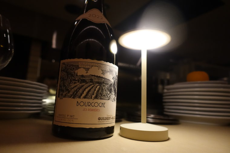 ここで頼もしい存在になるのが、店の入り口に据えられたウォークインセラー。客自身がラベルを眺め、造り手を選び、ボトルを手に取る楽しさまで体験として成立している。糸が揺れる空間の中でグラスを傾けると、選んだ一本に今夜の気分がそのまま映り込むようだ。
