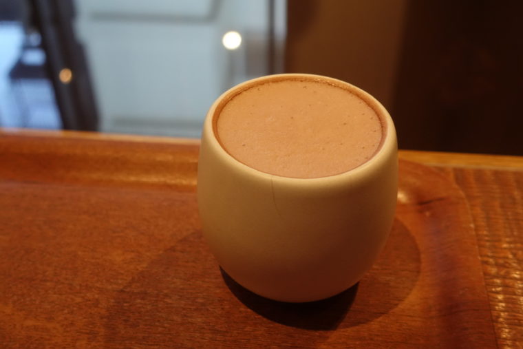 「蔵前ホットチョコレート」は、ほうじ茶で香りづけした蔵前限定の一杯。表面は静かな湖面のように滑らかで、口に含めばすっととろけて、カカオの深みの中からほうじ茶の香りがゆっくりと顔を出す。その移ろいが心地よく、後味の軽さがまた飲ませる。