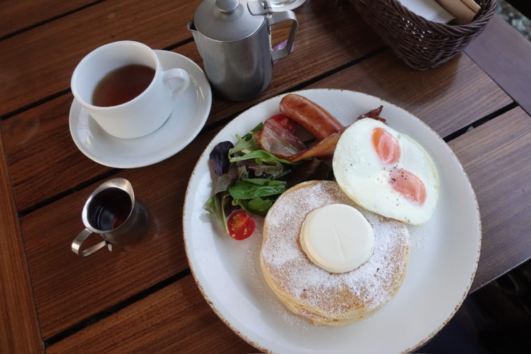 2025.12.18 昼 代官山、空間ごと味わう朝のカフェ@IVY PLACE 喫茶店・カフェ 渋谷・恵比寿・代官山 1000円〜2999円 ★★★★☆ 代官山の森に溶け込むように佇む『IVY PLACE』。 2008年オープン、TYSONS & COMPANYが描いたのは、自然を借景にした建築と、そこに流れる優雅な時間だ。蔦に覆われた外観、木々の気配を引き込むテラス、光と影が静かに行き交う設計。人工物でありながら前に出すぎず、あくまで風景の一部として成立している。 朝に選んだのは「IVY ブレックファストパンケーキコンボプレート」。小麦感がはっきりと立ち上がるパンケーキは甘さを抑え、粉の香りを主軸に据えた設計。そこに「フライドエッグ」の黄身のコク、「ソーセージ」と「ベーコン」の塩気が重なり、味は自然と収束していく。盛り付けは語りすぎないが、丸みのあるフォルム、バターの置き所、プレートに残された余白まで含めて、確かなセンスがある。カフェという舞台にきちんと似合うビジュアルと、朝食としての実用性が同じ線上に並んでいる。 『IVY PLACE』の魅力は、料理・空間・自然が競い合わず、同じトーンで静かに揃っている点にある。この環境でこの朝食をとるという体験は、しっかりと記憶に残る。緑に囲まれ、小麦を噛みしめる朝。その時間そのものが、この店の価値を端的に物語っている。ご馳走様でした。 — IVY PLACE050-5594-9414東京都渋谷区猿楽町16-15 DAIKANYAMA T-SITE GARDENhttps://tabelog.com/tokyo/A1303/A130303/13134309/