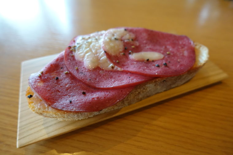 2026.01.04 昼 古都・京都らしいパン屋。@まっしゅ京都 パン・サンドイッチ・ハンバーガー 京都市 1000円〜2999円 ★★★☆☆ 京都中心部の一角、風情ある通り沿いに現れる町家造りの一軒。木格子の引き戸と白暖簾、そして「ぱん」と書かれた行灯が目印。その佇まいだけで心を掴まれるが、魅力はそこにとどまらない。『まっしゅ京都』が焼き上げるのは、ただのパンではない。京都という土地の文化や記憶までも練り込まれたパンたちだ。 「白味噌とホワイトソースのクロックムッシュ」は、その代表格とも言える存在。フランス発祥の料理をベースに、京都の白味噌を重ねるという大胆な発想。コク深いホワイトソースに、白味噌のやさしい甘みと発酵の旨味が溶け合い、パンの香ばしさと重なることで唯一無二の余韻を生む。ハムの塩気が全体を引き締め、ひと口ごとに“京都風クロックムッシュ”の完成度を感じる。 そして「光る君」。その名を聞けば、やはり思い浮かぶのは源氏物語の“光源氏”。トマトの果実味と厚切りベーコンの重厚感という組み合わせながら、不思議と上品さを纏っている。しっとりとしたパン生地がそれらをやさしく包み、味の重なりに奥行きをもたらす。そして中にはしっかり肉と山椒のアクセント。そう、大の女性好きで知られるあの方のごとく、外見は優美でも中身はしっかり肉食。華やかさと本能、その両方を併せ持つパンだ 「クロワッサン」は、その大きさにまず驚かされる。堂々としたサイズ感ながら、層は繊細。外はパリッと香ばしく、中はもっちりとしながら空気をはらみ、バターの香りが口いっぱいに広がる。 パンのラインナップを通して感じるのは、素材の選び方、味の構成、そしてネーミングに至るまで、古都のまなざしが貫かれている。古民家の空間とパンの世界観がぴたりと重なり、一つの物語を紡いでいるよう。訪れるべき理由がそこにはある。ご馳走様でした。 — まっしゅ京都075-352-0478京都府京都市下京区東洞院通高辻下る燈籠町568https://tabelog.com/kyoto/A2601/A260201/26006051/