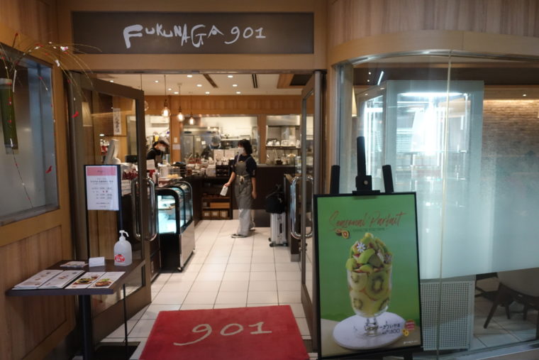 京都駅直結のジェイアール京都伊勢丹、その9階。観光・ビジネス・買い物、あらゆる動線が交錯する巨大ターミナルの中に店を構える『FUKUNAGA 901』。果物専門の老舗「フクナガ」が手がけるカフェ業態で、四条河原町の本店ではフルーツパーラーとして長年親しまれてきた。創業は1946年。果物の目利きに定評があり、季節のパフェを目当てに足を運ぶリピーターも多いそう。