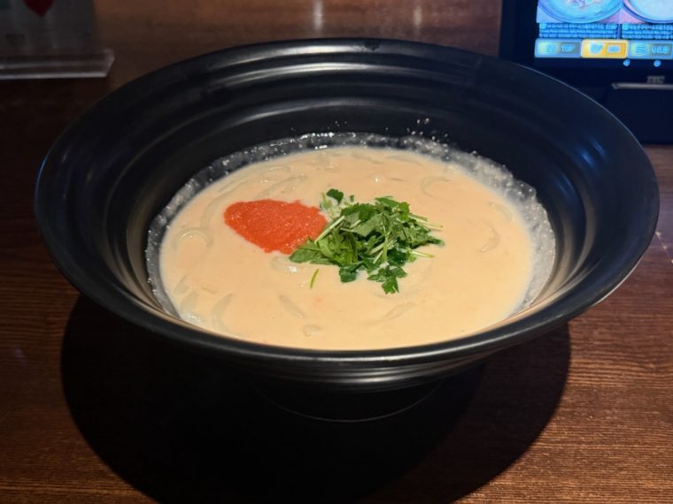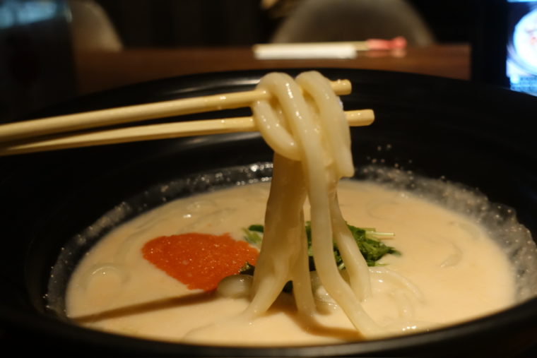 2026.01.05 夜 つるとんたんの現在地。@つるとんたん UDON NOODLE Brasserie 銀座 うどん 銀座・新橋・有楽町 1000円〜2999円 ★★★☆☆ 六本木で夜が更ける頃、つい足が向いていたのが『つるとんたん』だった。気軽に立ち寄れる存在だったはずが、いつの間にか外国人観光客で行列ができるようになり、自然と足が遠のいていた。気づけばそのブランドは大きく育ち、いまや銀座の一等地に。『つるとんたん UDON NOODLE Brasserie 東急プラザ銀座店』では、うどんのイメージを覆すスタイリッシュな空間が広がっている。窓の外には銀座の夜景、店内はまるでモダンなレストランのよう この日いただいたのは「明太子クリームのおうどん」。まず目を奪われるのが、やはり丼の存在感。直径30cmはあろうかという巨大な器が、どんとテーブルの主役に鎮座する。これこそが、つるとんたんのアイデンティティのひとつ。料理で驚かせる前に、器で記憶に残す。そんなブランディングが徹底されている。 スープはまるでポタージュのような濃厚さ。クリームのミルキーな甘さと明太子の塩気、そこにほんのりとした辛味が重なり、飲み進めるごとに旨味が深まっていく。仕上げに散らされた三つ葉の香りが、濃厚な構成を軽やかに整える。合わせる麺は、つるとんたんらしい極太手打ちうどん。もっちりとした弾力と喉越しの良さを併せ持ち、濃度の高いスープとの相性も申し分なし。 六本木でふらりと寄っていたうどんが、今では銀座で夜景とともにいただくものへ。気まぐれな夜食から、ひとつの食体験へ。うどんという枠を超え、都市の食文化として昇華されたような印象だ。ご馳走様です。 — つるとんたん UDON NOODLE Brasserie 銀座050-5590-6307東京都中央区銀座5-2-1 GinzaNovo 10Fhttps://tabelog.com/tokyo/A1301/A130101/13193351/