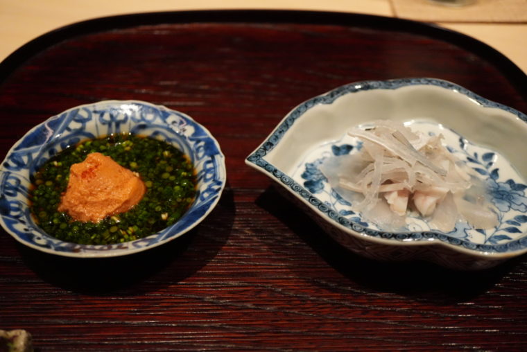 「甘海老」は、ゆるく叩かれ、舌の上でとろけるようなテクスチャに。添えられるのは、柚子胡椒ではなく「檸檬胡椒」。よりシャープな香りが甘さを引き締め、輪郭のある味わいに仕上げている。