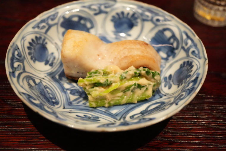 干物で登場したのは「ぐじの酒干し」。旨味が凝縮された身に、菜の花の苦味を合わせて、余韻はほのかに春めく。