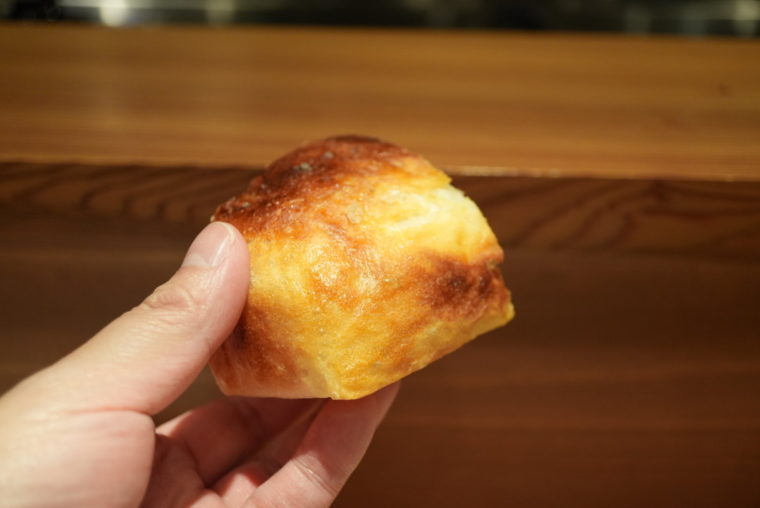 その姿勢をさっそく示すのが「フォカッチャ」。オーブンから取り出される湯気と香ばしい香りが、コース開始の合図になる。表面はパリッと、中はもっちり。オリーブオイルと岩塩がしっかり効いていて、小麦の旨さをまっすぐに伝えてくる。焼き立てにしか出せない質感と温度。これだけで、この店が信じていることが伝わる。