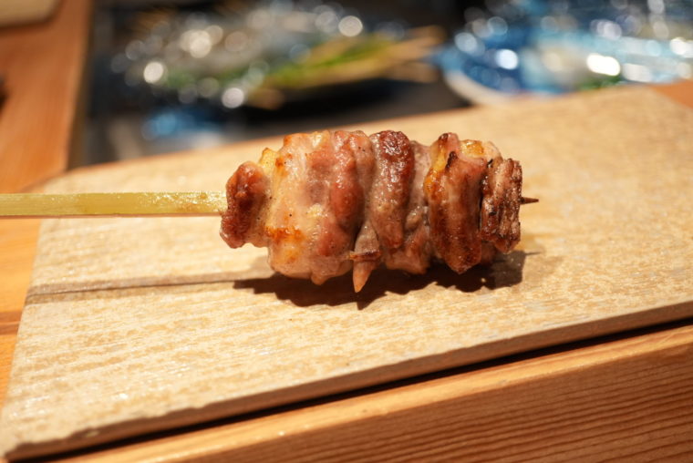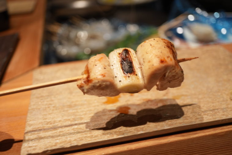 「むね肉のねぎま」火が入りすぎてやや乾きが目立つ