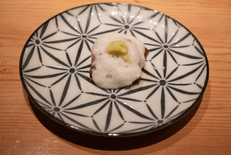 「漬けマグロ×自然薯×天城本山葵」和の素材を組み合わせた小鉢風の一皿